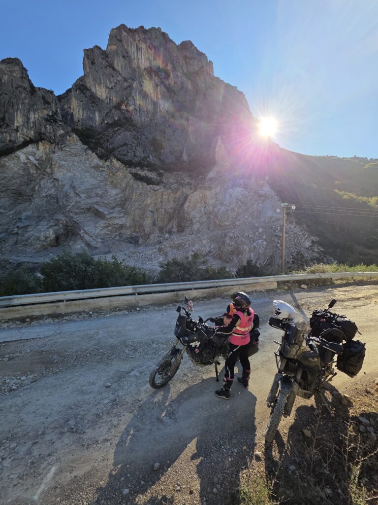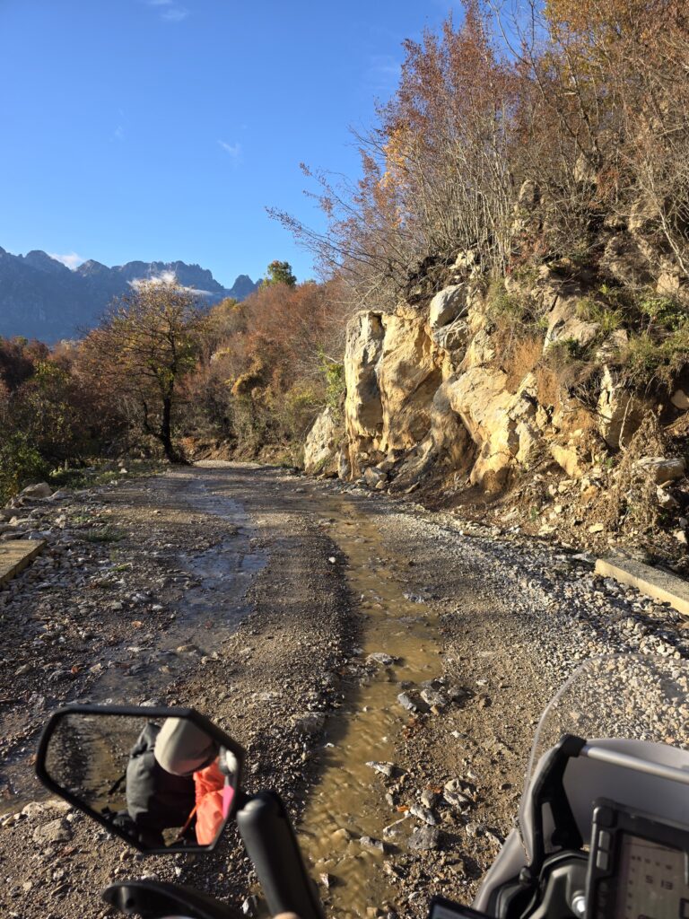 Pirkstiņi nedaudz salst, bet prieks par skaisto dabu un mazajiem kalnu ciematiņiem, kuriem dodamies cauri, tāpēc prieks par skaistumu tas ir daudz lielāks😊 nekā jūt aukstumu. Šodien arī izbaudījām trakos līkumiņus, kas vakar bija pilnīgi slapji, tagad jau citā tempiņā varēja izbraukt. A un skaistais kanjons, caur kuru izbraucām, vakar es nemaz, neko no tā neredzēju, pasakaini.