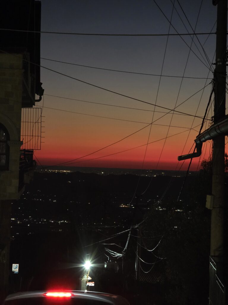Tik skaists vakars, mierīgas debesis un izskatās, ka arī ar krāsām mūs iepriecinās. Esam pilsētiņā un nekādīgi nevaram atrast, kur tad mūsu palikšanas vieta. Te visi atkal apstājas, pastāsta, paskaidro, parāda.