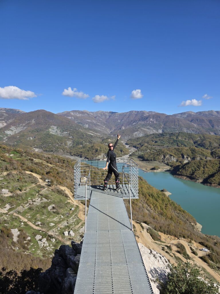 Tā nu mēs dodamies pa kalnu malu “Bovilla rock climbing line” uz augšu, es noteikti gribu zināt, kāds skats tur ir no augšas. Ir karsti, nav viegli, bet tas ir tā vērts, wow, nedaudz pat bail. Te mēs redzējām visu, serpentīnus, dambi, ezeru, kalnus un nebeidzamu tālumu. Te vajadzēja paskatīties aiz katra akmens stūrīša.