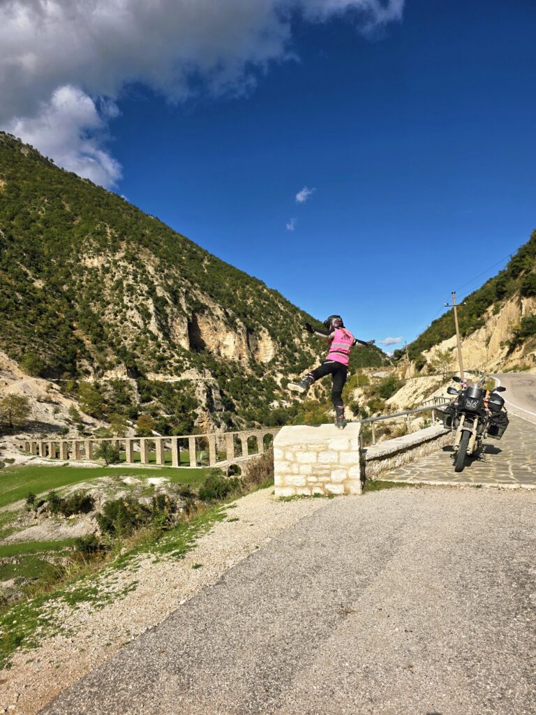 Laižam tālāk pa ļoti skaistu ceļu, kuram arī nevaru atrast nosaukumu, ceļš ved gar kanjonu no TEPELENE pilsētas uz PROGONAT. Fantastiski līkumi, iespaidīgi skati. Apstājāmies “Aqueduct of Ali Pasha”, kas šobrīd ir tikai kā vēsturisks objekts, bet 18.gs kalpojis gan kā ūdens noteces sistēma, gan ceļu sistēma. Šādas būves Esmu redzējusi gan Spānijā, gan Grieķijā. Ļoti skaisti iederas ainavā un ir apbrīnojama arhitektūra, jo tas ir vienkārši salikts no akmeņiem.