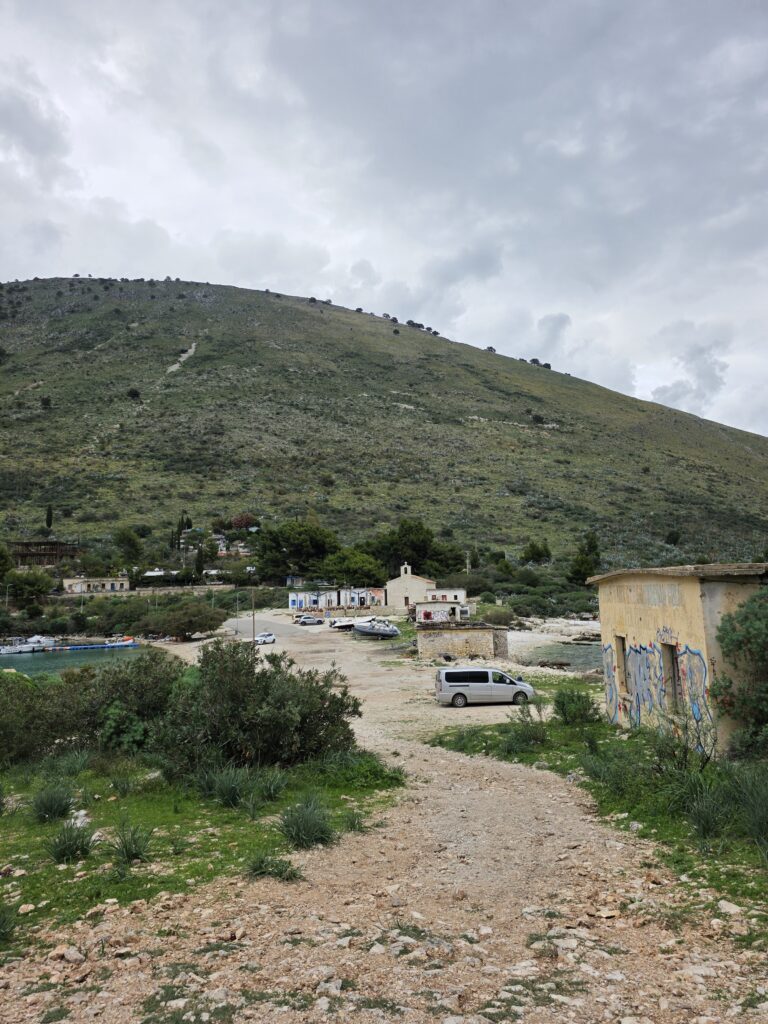 Ducinām paši uz priekšu, jo vēl jau ir ko braukt. Brauksim gar pludmali, ja nu kas, kaut kur atradīsim kur palikt. Pa ceļam nobraucam uz pussalas, kur ir interesanta, bet aizmirsta pils, “Porto Palermo”. Te gan pie ieejas ir mājiņa, kur samaksājot nelielu naudiņu, jūs varat tikt iekšā un izstaigāties. Mums tas gan šobrīd nav plānā, te ir skaidrs, ka jāmūk, paliek mākoņi arvien melnāki.