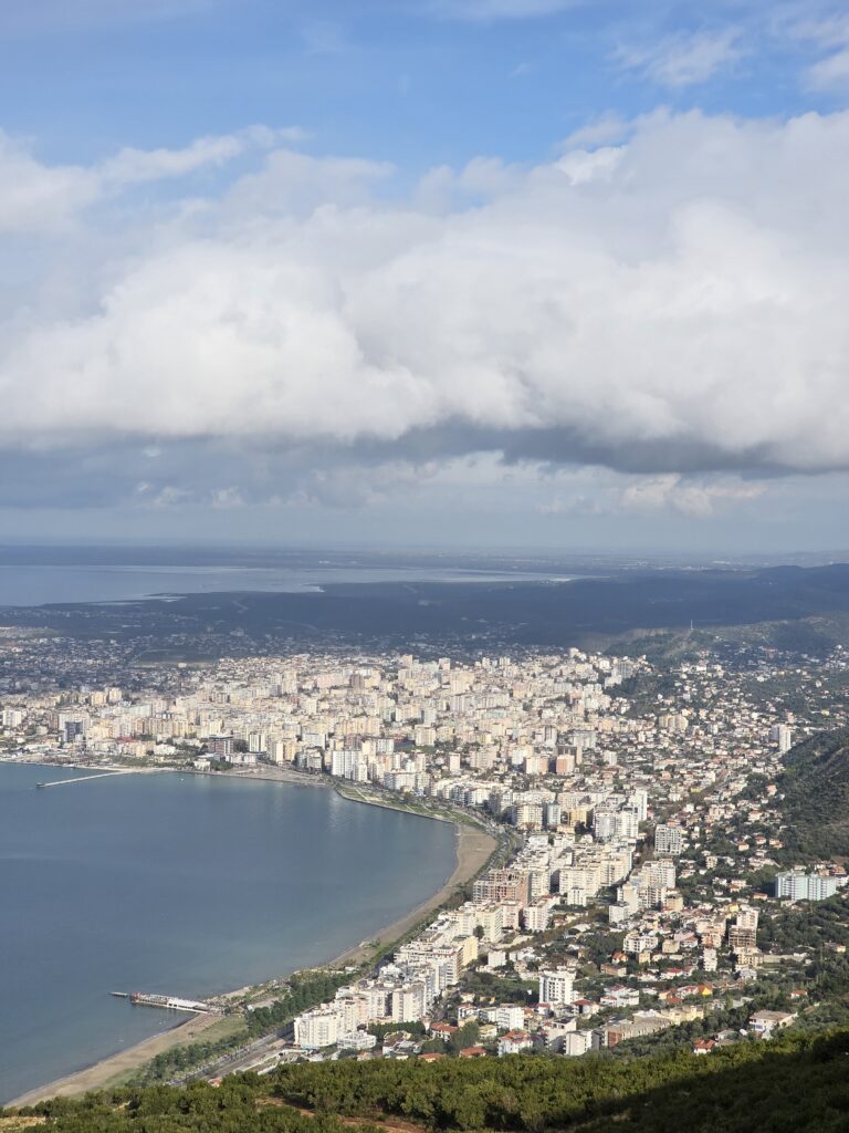 Un Te vēl mirklis, kad burvīgs skatu punkts, nevarējām pabraukt tam garām un apstājamies šosejas malā. Skatos kartē, VLORE pilsēta, nu pamatīga metropole, ar milzīgu pludmali, palmām, viesnīcām. Jā šis bija dienas skatu punkts, paldies.