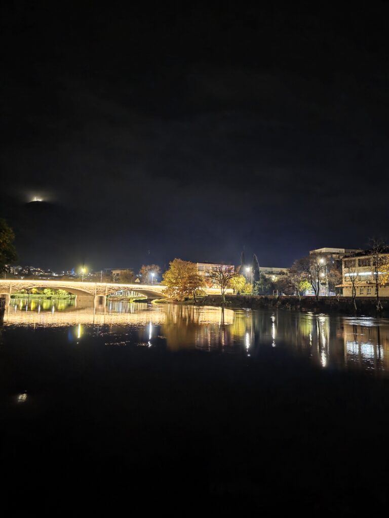 Tad nu noliekam pagalmā močus, saliekam žāvēties drēbes un dodamies uz vecpilsētiņu. Kad ārā ir vakara vēsumiņš un nedaudz pilsētiņā līst, tik skaisti ir pilsētu gaismās, pār upi senie tiltiņi, kas izgaismoti, ļoti jauka sajūta.