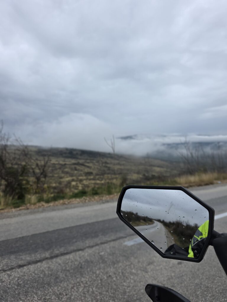 Esam uzbraukuši tik augstu, ka neredzam neko, braucam pa mākoni. Tam ir arī gaišā puse, jo nelīst un ja uzbrauc virs mākoņa, tad pavisam labi. Ceļi paliek diezgan akmeņaināki, jūtams, ka braucam tikai uz augšu, jo mocīšiem dažās vietās jau arī ar kāpumu grūti.