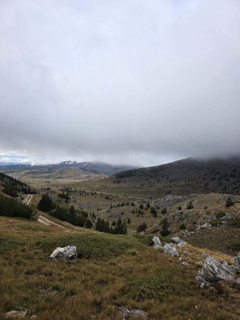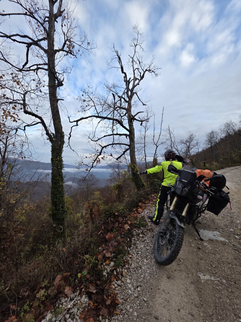 Lietus ir neatkāpīgs, līst un līst. Jūtu ka braucam tikai taisni un taisni, tad parādās ieleja un ieraugu, o moinīt, mēs braucam visu laiku gar kraujas maliņu. Tas bija tik skaisti, pie kreisās rokas turamies uz ceļa, pie labās milzu skats uz ieleju, ezeru “Boračko” un pilsētiņu.