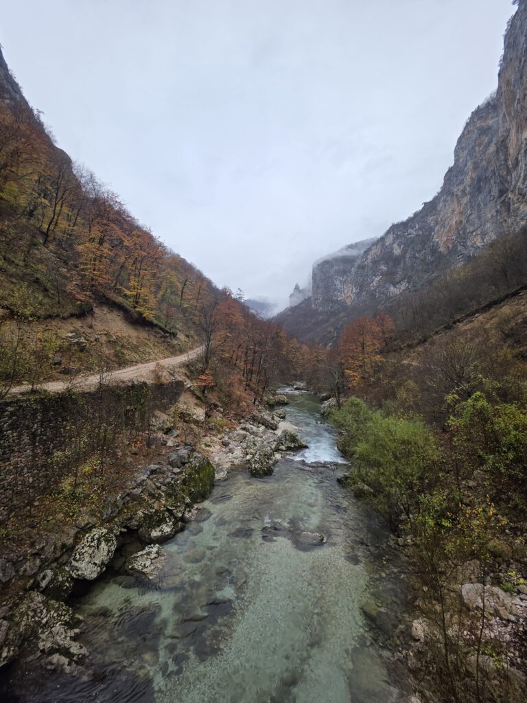 Braucot lejā, paskatāmies pa labi un viss skaidrs, kur brauksim pēc tam, pāri ielejai var redzēt otru ceļu, kurš vedīs mūs augšā. Lejā apstājamies uz tilta pāri kanjona upei “RAKITNICE”. Te arī ir brīnišķīga pauzīte ar bruģēto tiltiņu, dzidro upi un rudenīgo ielejas skatu.