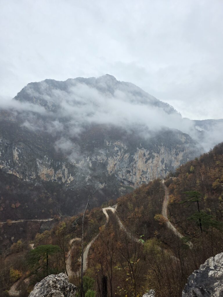 Turpinājām ceļu augstāk, palika šaurāks, akmeņaināks un sarežģītāks, bet braucams un apkārt visu laiku brīnišķīgs skats. Esam pie rīta lielā mērķa, “Tvrdava strac”, bunkuriem, jeb nocietinājuma, kas radīti, lai aizsargātu pilsētu.