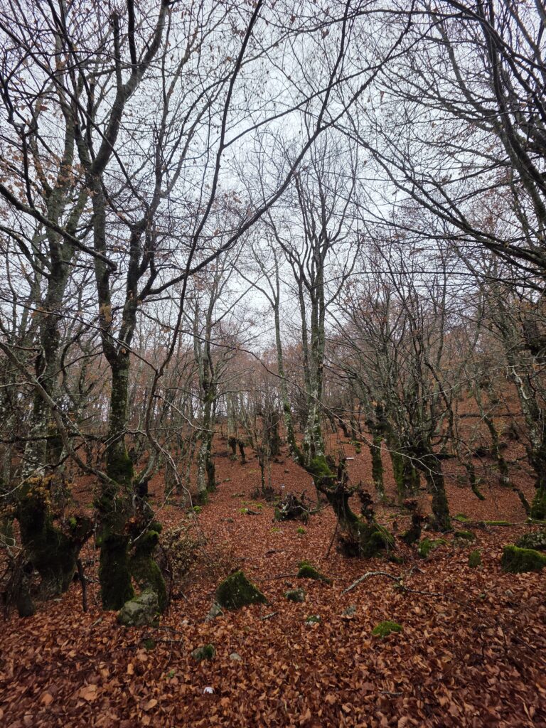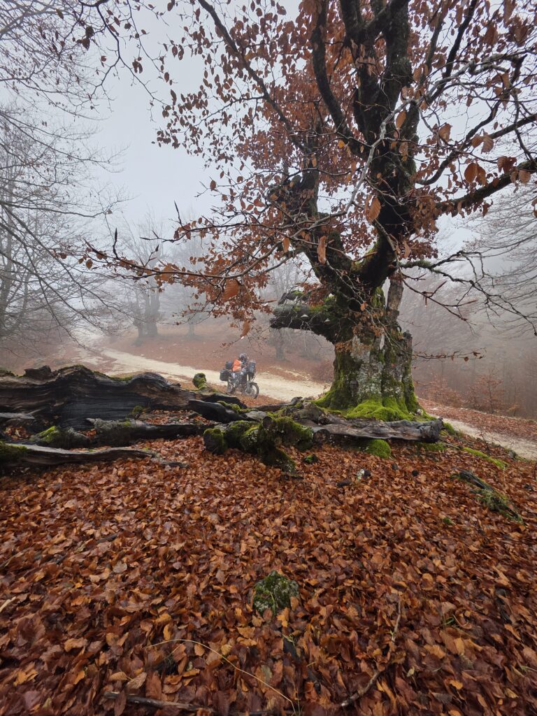Norunājam, ka kādā brīdī, ja lietus pierims un mums vieta ļoti patīk, taisīsim pusdienu pazīti. Tālu jau nemaz nebija jāmeklē, kad iebraucām spocīgā, bet skaistā burvju mežā. Ērmīgi koki, zeme klāta ar rudām lapām, visu ieskauj pamatīga migla.