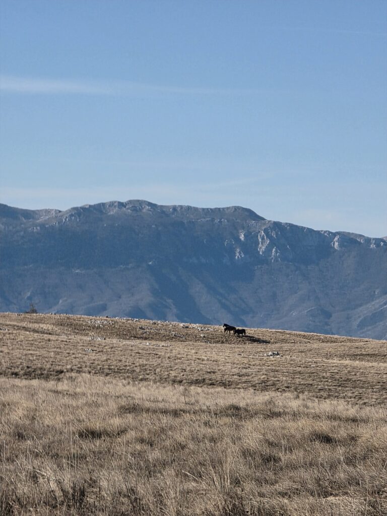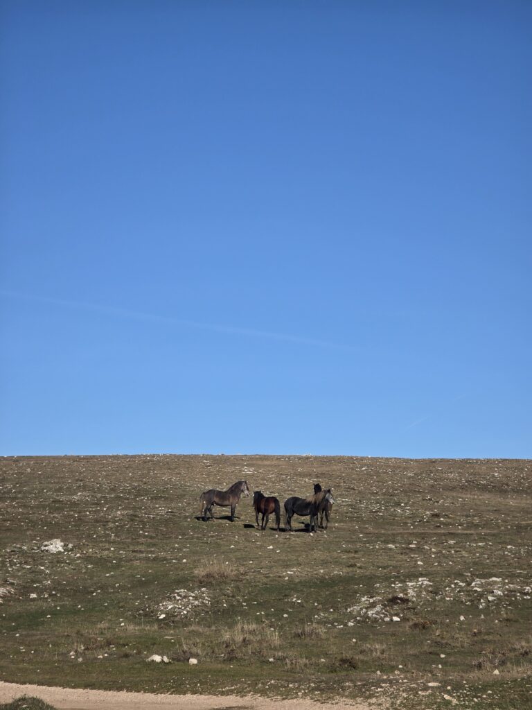 Arī tālāko ceļu turpinājām vērīgi, jo gribējās vēl kādus zirgus redzēt. Tie plašumi te bija tik milzīgi, ka zirgi varēja skriet uz visām debesu pusēm, kamēr pazūd aiz ielejas vai horizonta. Te arī ir burvīga kalnu virsotne CINCAR, no kuras paveras milzīgs panorāmas skats.
