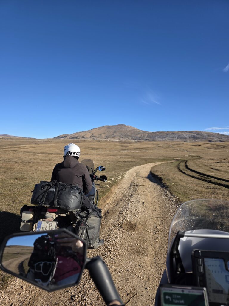 Mēs jau braucam pa zemes ceļu, pilnīgs klusums, pilnīgi lauku ceļi, tas bija negaidīti😊. Bet daba atkal citādāka, man patīk un mums patīk, smaids ir līdz ausīm. Tāds pamatīgs lauku ceļš ved kaut kur, cauri kalnu pļavām. Pēc brītiņa jūtu braucam uz leju un mazi serpentīni, bet nekas traks, kaut kur bedres, kaut kur akmeņi, viss braucams.
