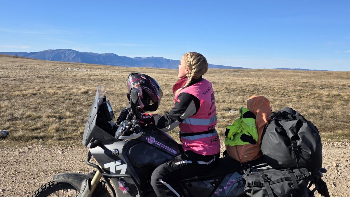 Beidzot esam uz zemes ceļa, apstājamies paskatīties kartē. Es tā trīcēju, ka vispār neko nevarēju telefonā nospiest, bet es zināju, ka tūlīt jau sasildīsimies. Te mums ļoti ātri palika karsti, jo viss ceļš bija vienos akmeņos un oļos. Braucot kalnā mocīši dancoja, kā pavasarī pļavā izlaisti telēni.