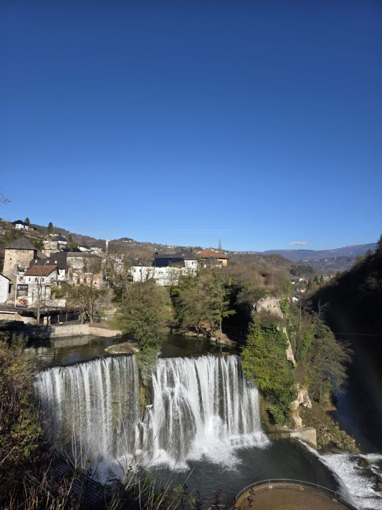 Ieripojam JAJCE pilsētiņā, maza, sakopta un šobrīd pilnīgi klusa. Skatoties pēc suvenīru kioskiem un kafejnīciņām, te noteikti ir tūrisma sezonas laiks, kad iet karstāk, kā bišu stropā. Tagad vieni paši mierīgi iebraucām stāvlaukumā un piegājām paskatīties “PLIVA” ūdenskritumu. Tā nu pilsētiņas centrā upei ietekot citā upē, tāds skaistums izveidojies un diezgan iespaidīgs.