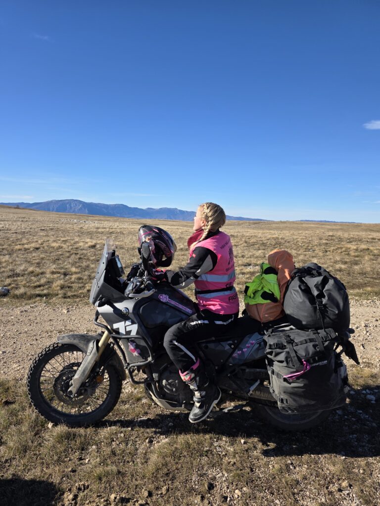 Savam mīļajam ceļabiedram lūdzu apstāties, te bija tiiik skaisti nu tiik labs skats, labākais rīts un labākais ceļš. Protams manī iezagās šaubas vai es to varēšu un man tas mocis ir liels un nokrauts un tas taču ir dubļains un akmeņains kalnu serpentīns, ne es noteikti nolikšu uz deguna. Bet man sakarināja makaronus, protams, ka tu varēsi, te vispār nav nekas tāds, aiziet mizojam😊