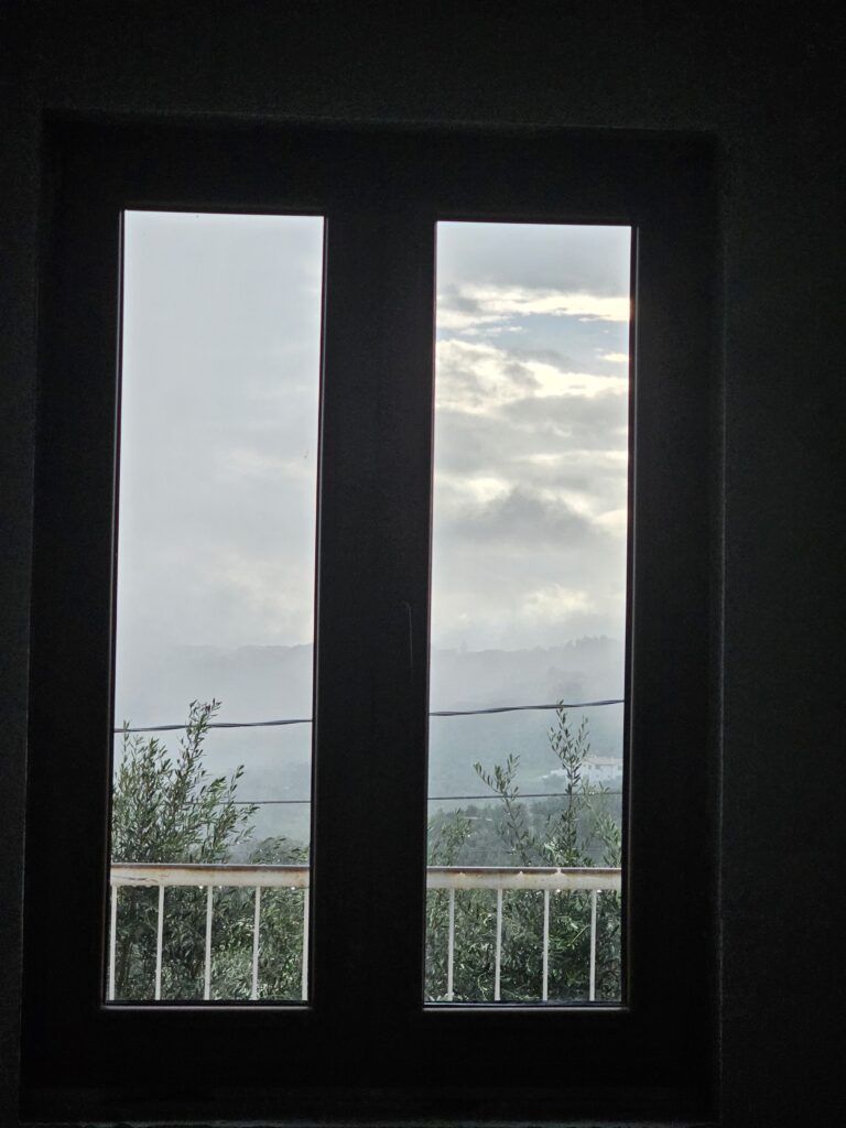 Es ļoti priecājos par sauli, lai arī kalnu ēnās ir vēsāks, galvenais, ka ir sauss un balti mākonīši. Te laukos, dievinu olīvkokus, to lapu krāsu un tumšos augļus, tik skaisti.