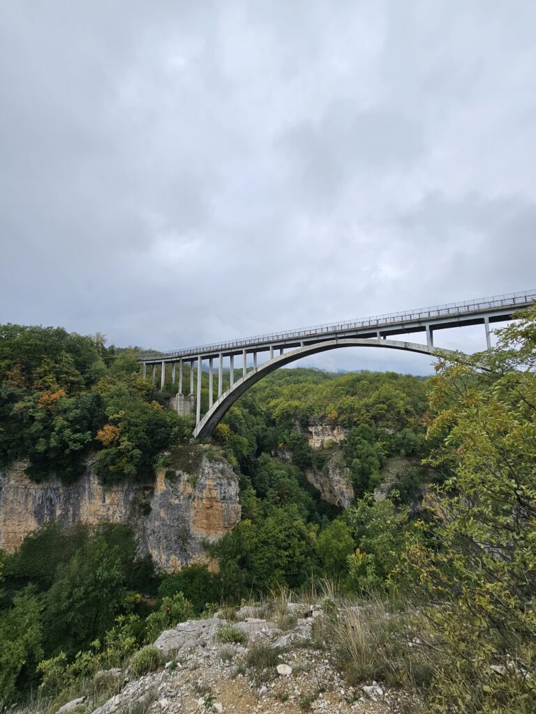 Labi nolēmām 2dienas pabraukāties pa vidienes kalniem un papēža krastu, tad jau redzēs, ko laiks rādīs. Labāk braukšana iet ar mērķi, tāpēc esmu salikusi punktiņus kartē, lai iet😊. No kempinga netālu, kalnu ielokā ir tilts- “Ponte di Salle” un mazs ciematiņš ar skatu uz aizu.
