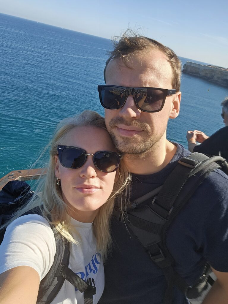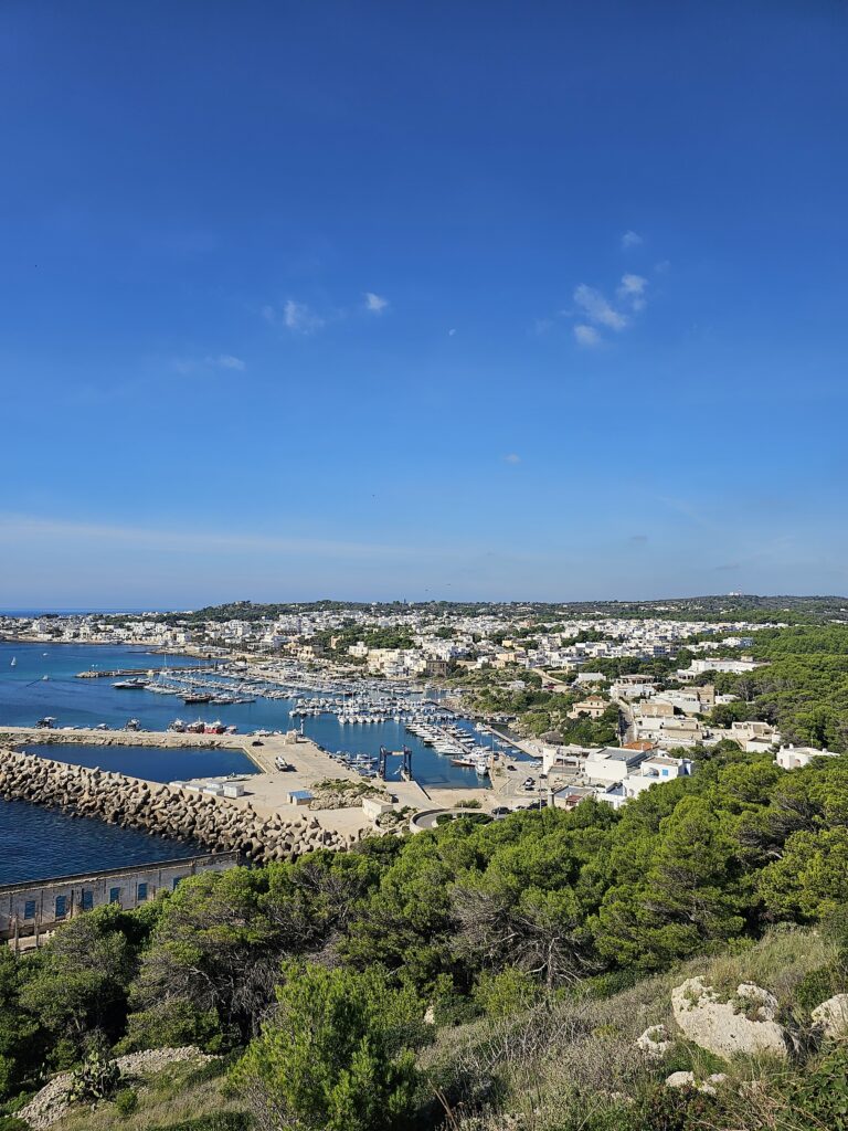 Vēl mazliet ceļā, līdz tiekam “Porto Miggiano”, te ir bijusi senā pilsēta, bet vairs palicis tikai tornis un drupas. Dažādi jaunie mākslinieki filmē mazās skatu filmiņas un taisa mīlnieku fotogrāfijas. Pasmaidām un braucam, jo nu jau par daudz sāk cepināt😊. Un tā kaut kur pa maliņu braucot tiekam vietējā kafejnīciņā. Interesanti, tāda kā bufete, viss svaigs tomāti, sieri, zaļumi, dažādi prošuto. Tad tu pienāc, pasaki meitenēm kuru maizīti gribi un ko salikt virsū. Tas bija forši, sēdējām pie galdiņa ēnā, visi apkārt dzēra vīnu un alu, arī omītes, izbaudot dzīves mirkli😊.