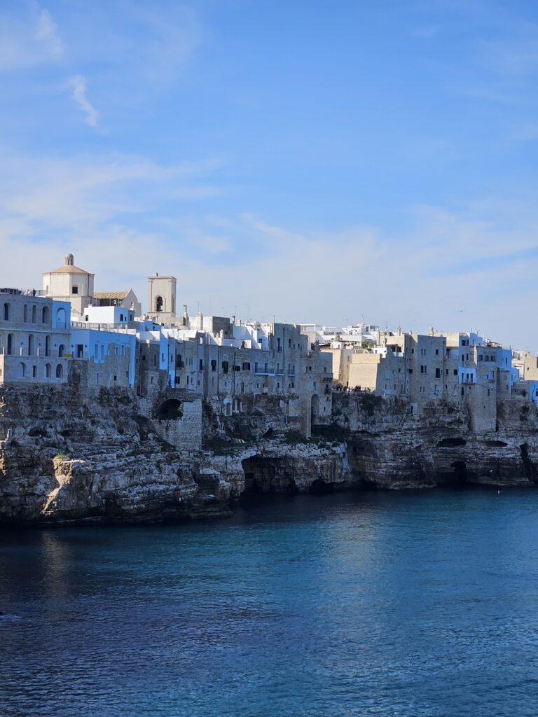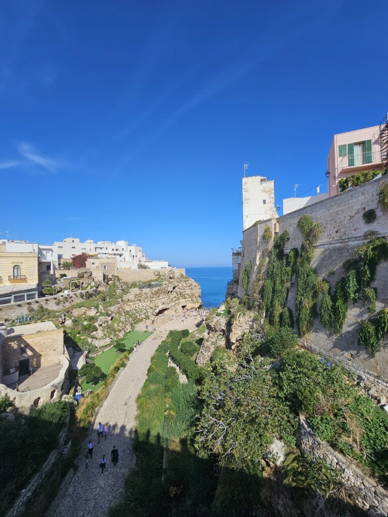Šorīt priecīgi, gan paēduši, gan izgulējušies un ar plānu galvā varam lekt rumakos un doties. Esam ceļā uz POLIGNANO a MARE piekrastes pilsētiņu. Šorīt saulīte spīd gaismiņu nežēlojot un siltumiņš tieši, kā Italy vajadzīgs. Atrodam stāvlaukumu motocikliem, patīkami, ka bez maksas, jo vairs nav sezona, nolemjam, ka laiks vasarīgākām drēbēm, visu atstājam uz motocikliem un dodamies pastaigāties.
