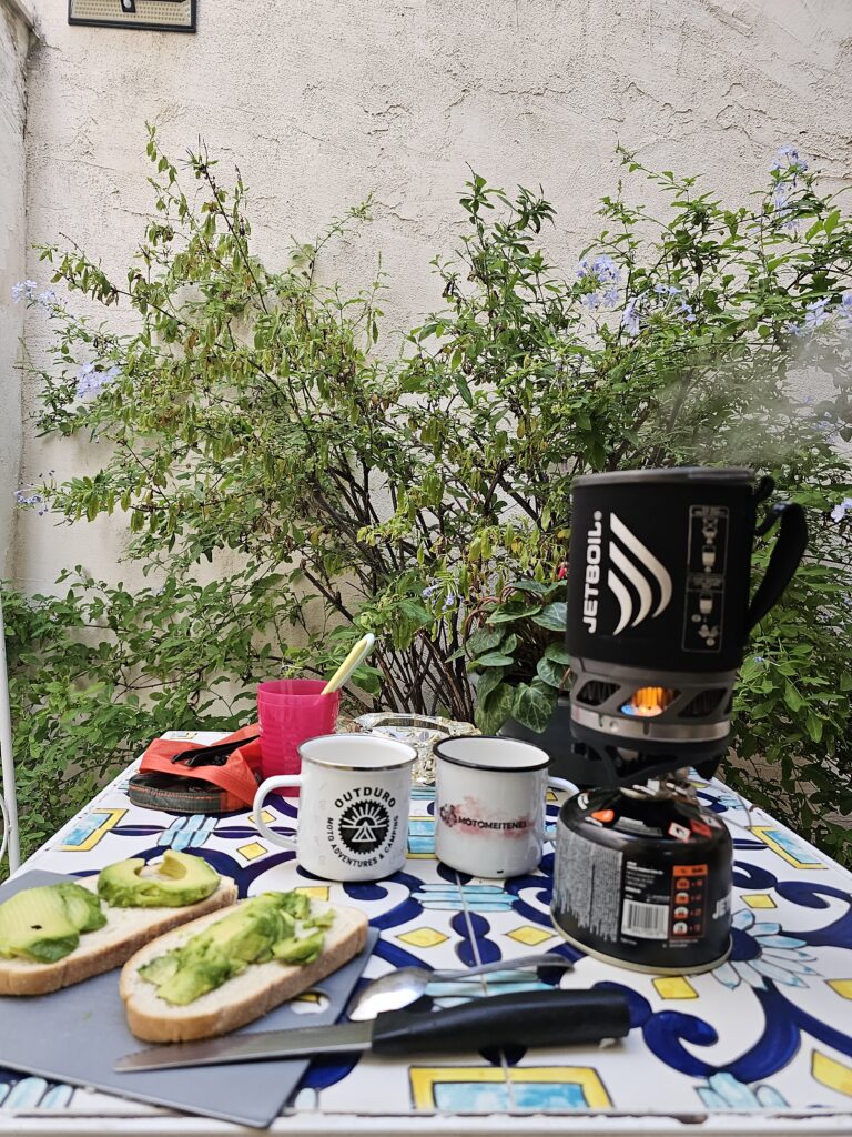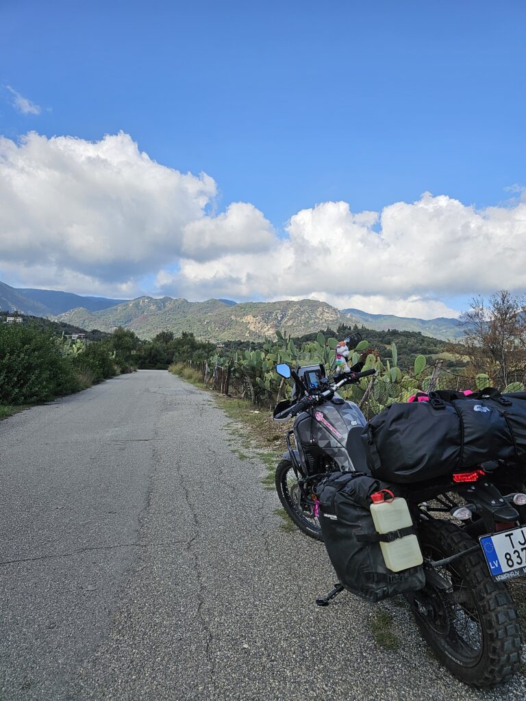 Atkal bijām ceļā, mazliet nāca miegs, jo ir viens mazs ceļš no pilsētiņas uz pilsētiņu, rīta satiksme ir mazliet lielāka un garām tikšana šajā šaurībā un aiz līkum, līkumiem diezgan neiespējama. Izdomājam, ka jāierauj viena stiprā kafija, tikmēr piebrauc citi ceļotāji, kuri labprāt pārmij kādu vārdu un pastāsta, ka iznomājuši močus, pēta vietējo apkārti, domā par izbrauciena rīkošanu tūristiem. Vēl jau pa ceļam mēs viņus šodien satikām.