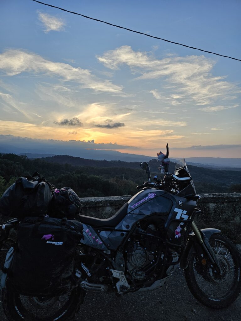 Nu tā mēs pa “Parco Nazionale dell Aspromante, Italy lejasdaļā mētājamies. Izbraucām foršos laukus un nemanot metās jau krēsla, kādā ciematā apsēdāmies uzvilkt elpu un no strautiņa sapildīt ūdeni. Jo izskatījās, ka šodien nevar saprast kur paliksim😊.