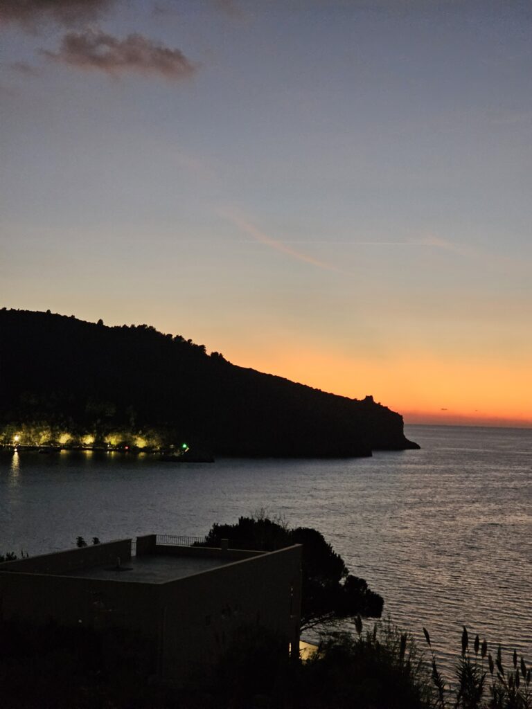 Forši bija tas, ka nesezonā nebija jāmaksā par ieeju, arī motociklus bija kur nolikt un bez maksas, tāpat arī cilvēki nebija pārāk daudz. Visa diena bija bijusi tik saulaina, ka vakaru pavadīt šādā vietiņā ir patiesi brīnišķīgi. Un sajūtas ir iezagusies itāļu nesteidzīgā daba😊.