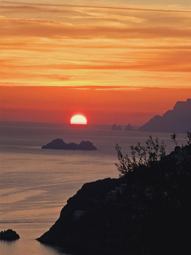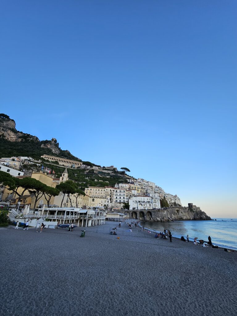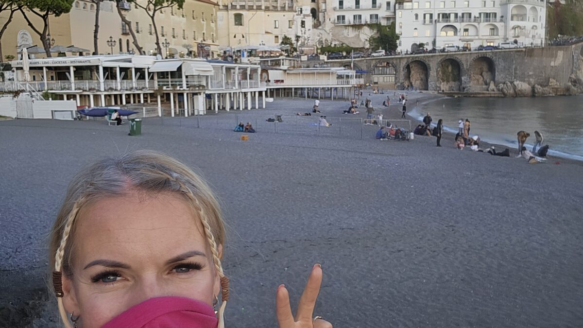 Lejā atkal turpinājām ceļu pa sastrēgumiem un visu kas pie Italy populārajām vietām iederas. Labi ka manās acīs bija ziedi un turējos mierīgi. Protams lejā, nobraucot uz “Costiera Amalfitana” krastu, bija katastrofa, lielos močus nekur nevar izbraukt un vispār nav vietas nolikt. Tad es arī jutu, pārāk daudz uzmanības, jo stāvi tur maza kurmene ar to lielo moci sastrēgumā un visi brīnās😊. Es mazliet pa krastu pastaigājos, jo tiešām ļoti, ļoti skaisti. Bet zuda prieks, ka vienam stūrītī jāstāv ar motocikliem un tu skaistā vietā, esi ar svešiniekiem. Prieku un piedzīvojumus gribās dalīties😊. Man mazliet pietrūka, tas, ka nenoķērām saulīti, jo jau bija vakars un saulīte no krasta bija aizgriezusies aiz kalna. Bet kopumā, protams, šis krasts ir sakopt, iekārtots, kā paradīze, te ir skaists ūdens jūrā, viesnīca pie viesnīcas, restorāniņi, viss Instagramm smukum bildēm.
