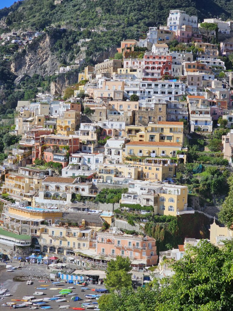Un tā līdz “PASITANO” pilsētai, kur viss ir tik burvīgs, tik skaists, bet mēs jau saguruši, tāpēc arī tikai izbraucām cauri uz maziem mirklīšiem piestājot. Bet pilsētā varējām iespringt, piestāj, brauc autobuss, netiek mūsu somām garām, neko braucam tālāk. Un bija Ellīgi karsti, jo spīd saulīte, atkal +30, te nav vēja, jo viss ir aiz kalnu ieloka, šauri ceļi, daudz ēku… uhhh. Bet šajā pilsētā ir ierīkoti stāvlaukumi klintīs, tāpēc var pirms tam izpētīt, braukt uz stāvlaukumu, nolikt lielo moci, uzvilks šortus ar pīlītēm un ienirt pilsētas skaistajā pludmalē😊