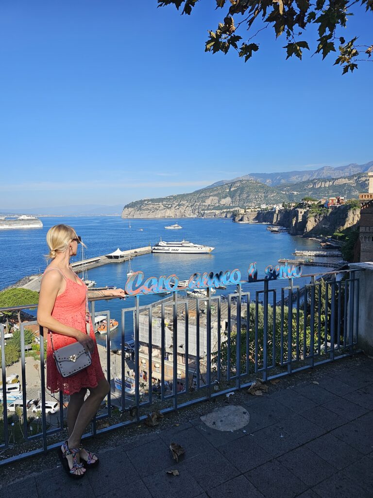Protams, pati SORRENTO ir apbrīnojama, visi augi, koki ieliņas, tālumā kalnu skati. Eh un vecpilsēta, atkal tirdziņi, suvenīru veikaliņi, mazas ieliņas, viss tik skaists. Nonācām arī foršā skatu vietā, kur redz lielos ienākošos kuģus, izgājām cauri dažādām arkām un pagalmiem.