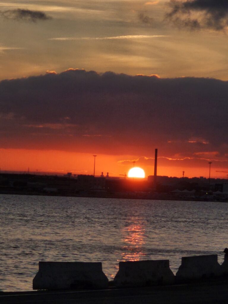 Šajā pusē kalnam uzspīdēja saulīte, pasmaidījām un sapratām, ka viss būs labi. Pie tam, ceļā, noķērām skaistu saulrietu. Ar mazu pauzīti, milzīgā nogurumā tiek pieņemts lēmums. Lēmums-ieliekam taisnāko iespēju tikt uz kuģi, bez piedzīvojumiem. Tā nu pēc 1h brauciena esam pie kuģa un nopērkam biļetes. Nieka 10minūtes un mūs jau uzdzen uz klāja. Dodamies piedzīvojumos uz SICILY.
