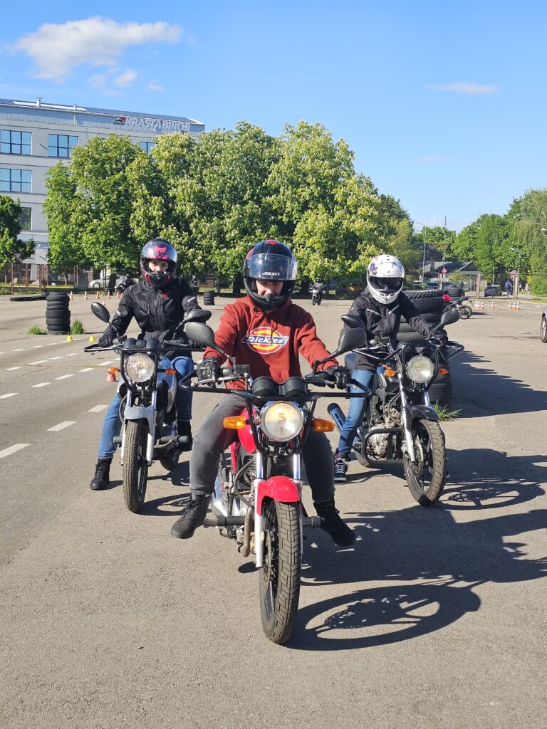 Mācīties man patīk, tas ir fakts, bet ar pabeigšanu man ir kā ir… Ar šādu domu fonā es ierados uz pirmo teorijas nodarbību. Bez ekspektācijām, bez prasībām – darīšu, kas jādara, lai arī cik ļoti man diskomfortu rada jaunas iepazīšanās, cilvēki un prasības. Pirmais iespaids nodarbībā – kur es esmu nokļuvusi? Kāpēc Lelde tik daudz smaida un ar tādu entuziasmu runā par lietām, kuras es nekad neesmu piedzīvojusi: par braukšanu ar moci tuksnesī, kalnos, mežā, sniegā utt. Dažbrīd manas domas peldēja ārā pa durvīm, līdz sākās tehniskās lietas… o, jā. Man patīk izjaukt, ne vienmēr izdodas salikt atpakaļ, bet par to es nepārdzīvoju – man ir tētis, kas vienmēr palīdz salikt atpakaļ.