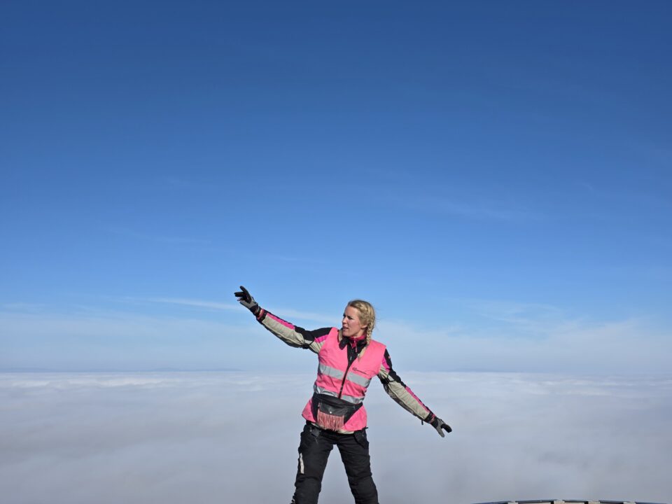 Nolemjam drusku piestāt uz mazo apspriedi, visi uzreiz salec pie motociklu iz-pūtējiem kaltēt cimdus un sildīties. Bet ko gan darīt, risinājuma nav, tāpat pāri tiem kalniem jātiek, tā, ka jābrauc vien tālāk, jāsaņemas un jācer, ka tālāk nebūs sniegs. Nopētām ainavu un vien nosaka, ja šo bildi kādam aizsūtītu ar uzrakstu “Sveiciens no Āfrikas”- tad padomātu nu gan jociņš, bet nu tāds trakais ledus skats mums bija.