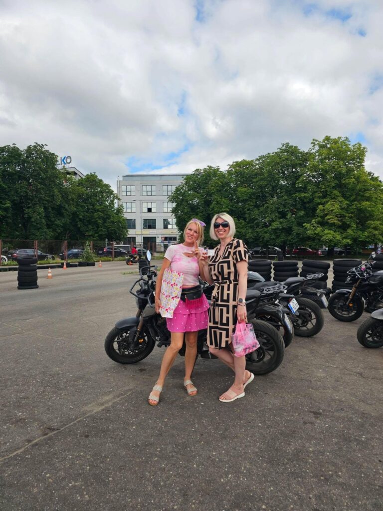 Satiku savu tikpat spēcīgo “Gribu” draudzeni, un kopā uzdrošinājāmies spert soli nezināmajā. Moto apmācības sākās kā rozā mākonis — ar sajūtu, ka esam īstajā vietā un īstajā laikā.